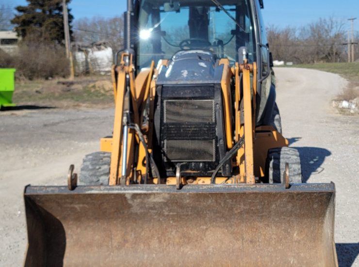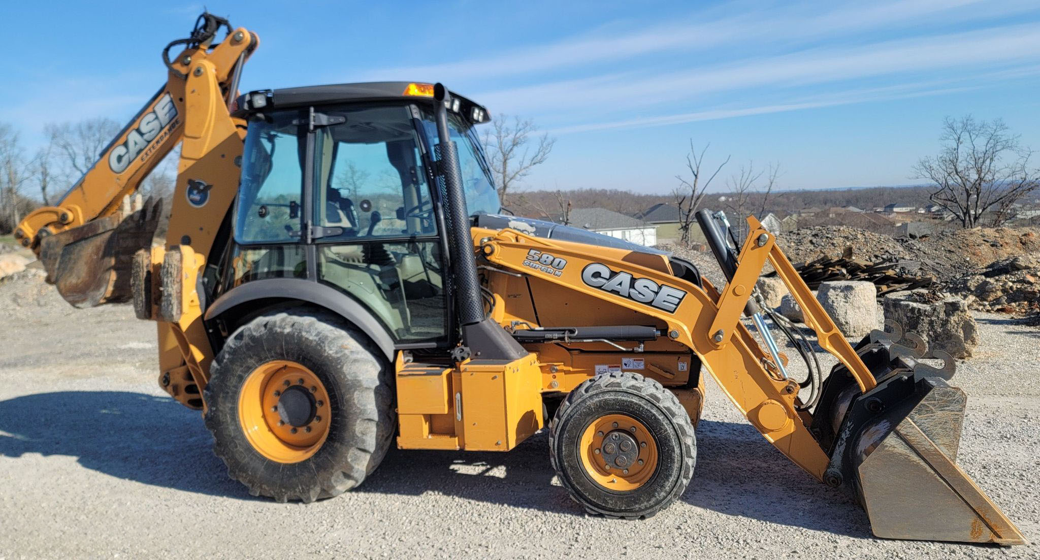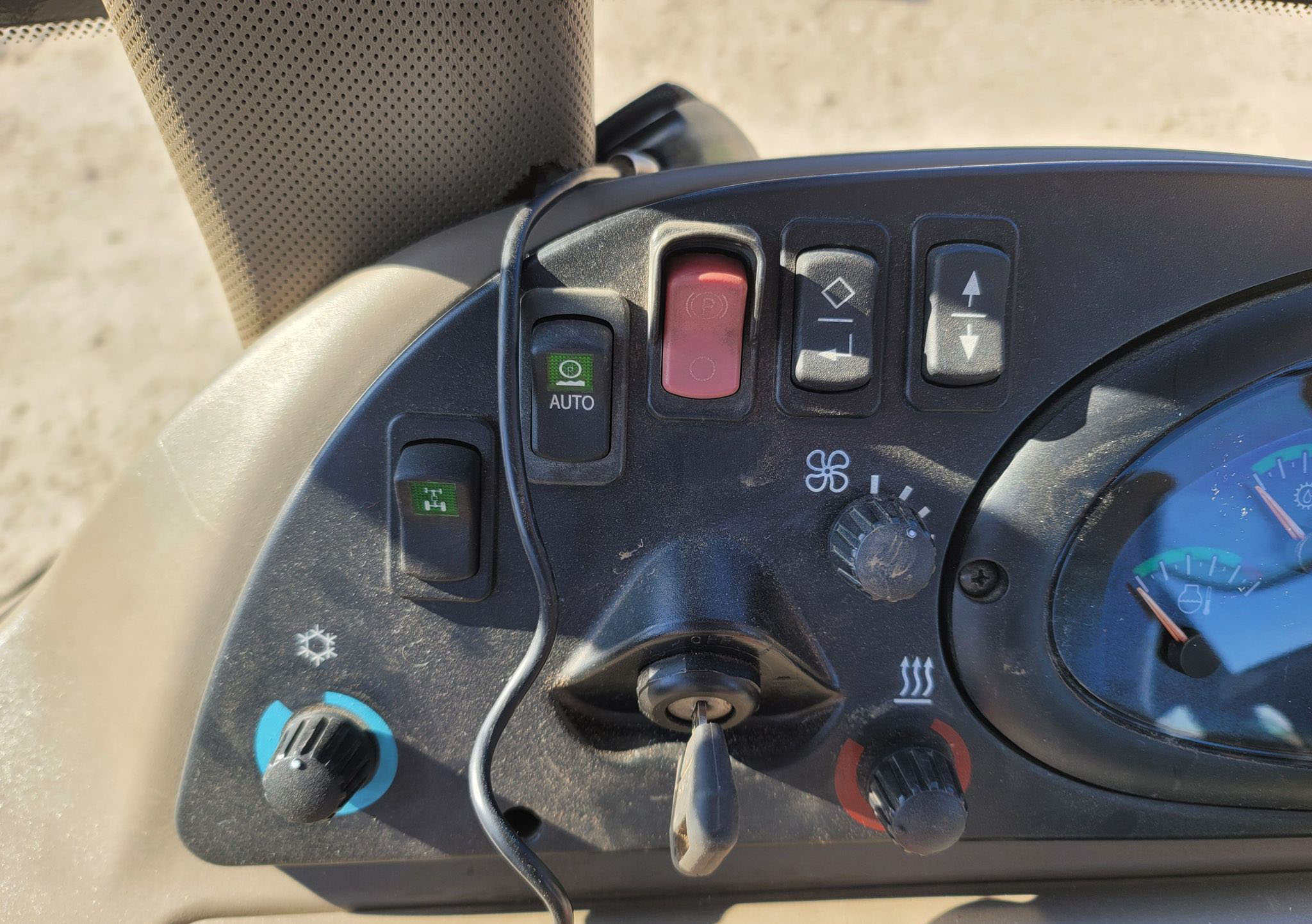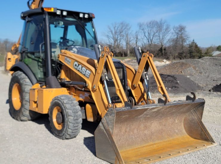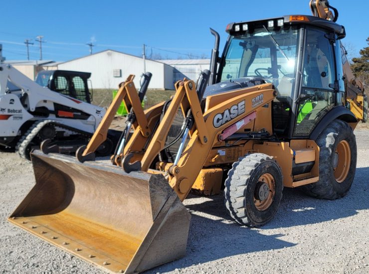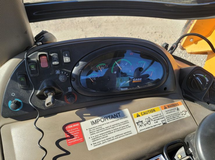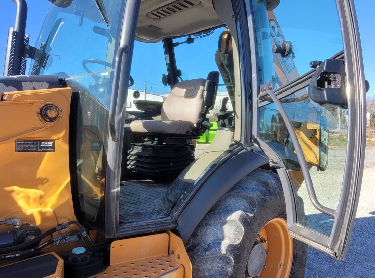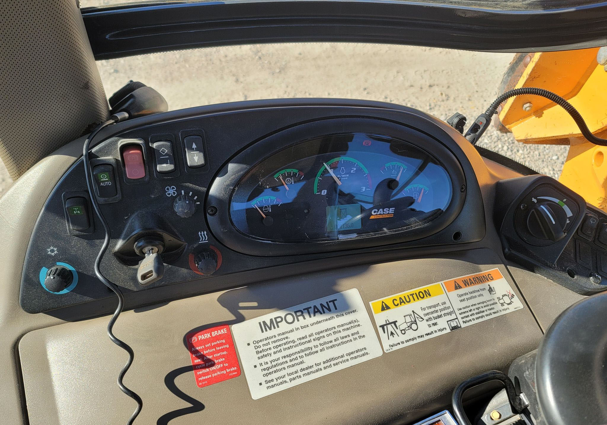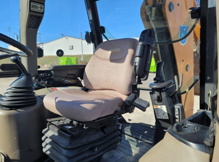 The 2015 Case 580 Super N backhoe has 1,136 hours and features a 4-cylinder diesel engine. It has a shuttle shift transmission with 4 forward and 4 reverse speeds, and includes a differential lock. The operator’s station is equipped with an EROPS cabin with AC and heat, and the backhoe controls are Wobble stick / two stick. The loader has an 82" bucket with a weld-on cutting edge, while the backhoe features an extendable stick with a 16" bucket. The machine is fitted with 12-16.5 front tires and 19.5-24 rear tires.